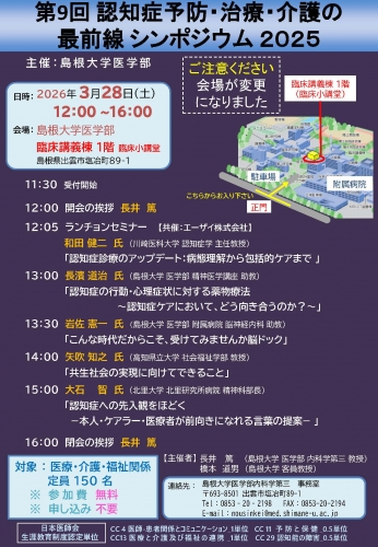 2026年3月28日(土)に【第9回 認知症予防・治療・介護の 最前線 シンポジウム 2025】を島根大学医学部にて開催しました。