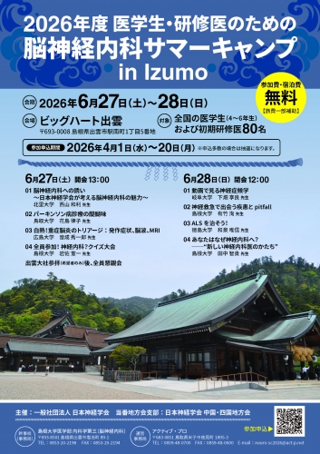 2026年医学生・研修医のための脳神経内科サマーキャンプin Izumoについて|お知らせ|日本神経学会